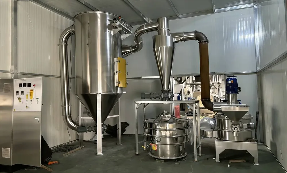 A2: Det kan justeres. Fruit Vegetable Ultra Fine Pulverizer er udstyret med en præcisionssortering. Ved at justere rotationshastigheden af sorteringshjulet kan pulverets finhed styres fleksibelt. Jo højere rotationshastighed, jo finere pulver; Samtidig kan forskellige specifikationer af skærmnet udskiftes for at opfylde de forskellige finhedskrav på 80-600 mesh. Betjeningen er enkel og bekvem, uden behov for professionel værktøjsassistance.