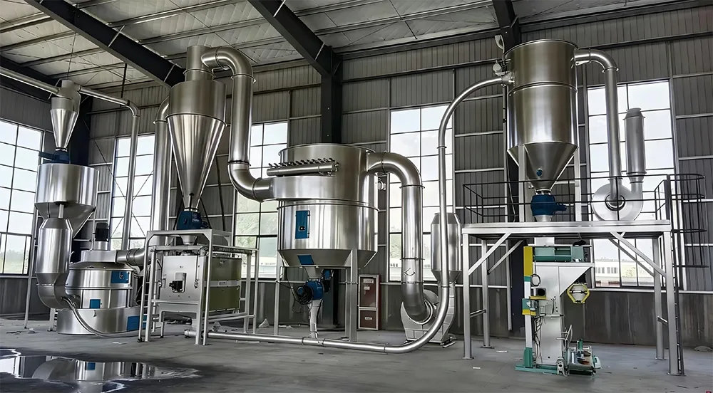 Dette design stammer fra Xingshengweis års tekniske akkumulering i forarbejdning af materialer med højt olieindhold; Derefter kommer sorteringsfasen, hvor det højhastigheds sorteringshjul, der er indbygget i udstyret, præcist balancerer centrifugalkraft og luftstrømskraft for at vælge kvalificeret fint pulver, der opfylder kravene. Grove partikler, der ikke opfylder standarderne, vil automatisk flyde tilbage til knusningsområdet til sekundær behandling, hvilket sikrer, at partikelstørrelsen af det producerede pulver er ensartet og konsistent, og klassificeringsnøjagtigheden opfylder de strenge produktionsstandarder for Xingshengwei; Til sidst, i opsamlingsfasen, kommer kvalificeret jordnøddepulver ind i cyklonopsamleren med luftstrømmen for at fuldføre separation og opsamling. Den matchende pulspose støvopsamler kan opnå mikropulvergenvinding og udstødningsgasrensning uden støvlækage eller materialetab under hele processen. Det er både miljøvenligt og kan forbedre råvareudnyttelsen, hvilket demonstrerer Xingshengweis grønne produktionskoncept.