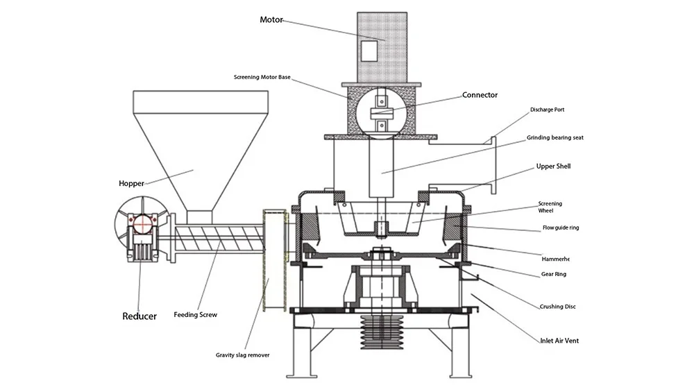 Xingshengwei Peanut Ultrafine Grinder anvender en samarbejdsproces med "højhastighedspåvirkning + luftstrømsklassificering + lukket sløjfe-støvfjernelse", der integrerer Xingshengweis 12 brugsmodelteknologier. Hele operationsprocessen er videnskabelig, effektiv og meget kontrollerbar, specifikt opdelt i fire kernestadier: For det første fodringstrinnet, hvor de forbehandlede jordnødderåmaterialer ensartet føres ind i knusekammeret gennem en dedikeret fodringsenhed. Forskydningszonen dannet af den roterende højhastighedshammer og den faste slibeskive fuldender hurtigt den indledende knusning af jordnøddepartikler; For det andet vil højhastighedsluftstrømmen inde i knusekammeret i knusestadiet bringe animalske materialepartikler til at kollidere og gnide mod hinanden. På samme tid, ved hjælp af den stærke forskydningskraft, der genereres af slibeskivegabet, kan den dybe nedbrydning af jordnøddecellevægge opnås, især for materialer med højt olieindhold såsom jordnødder, som effektivt kan undgå vægklæbning og materialeblokeringsproblemer.