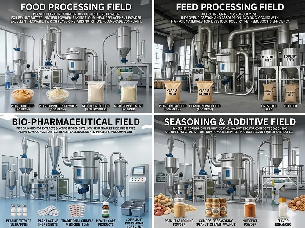 Xingshengwei Peanut Ultrafine Grinder, med sin præcise tilpasningsevne til materialer med højt olieindhold, såsom jordnødder og understøttet af Xingshengwei's omfattende industriserviceerfaring, anvendes bredt i dybe forarbejdningsscenarier på tværs af flere industrier. Det hjælper virksomheder med at udvide produktkategorier og øge produktkonkurrenceevnen, efter at have tjent tusindvis af kunder inden for områder som fødevarer, foder og biofarmaceutiske produkter.