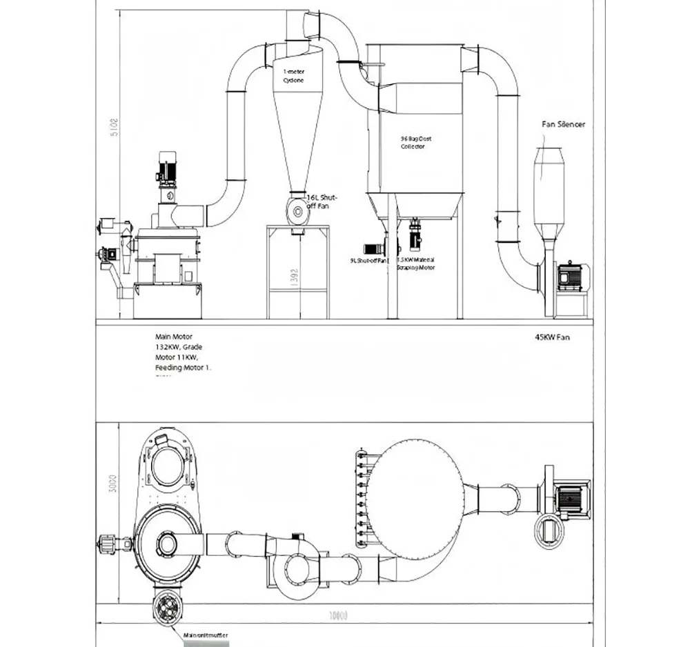 Den ultrafine slibevært består af et fodringssystem, et slibesystem og et sorteringssystem. Knusningen og sorteringen af materialer udføres i samme kammer.